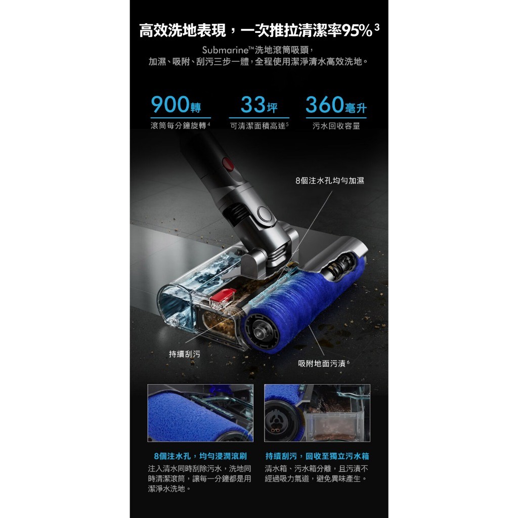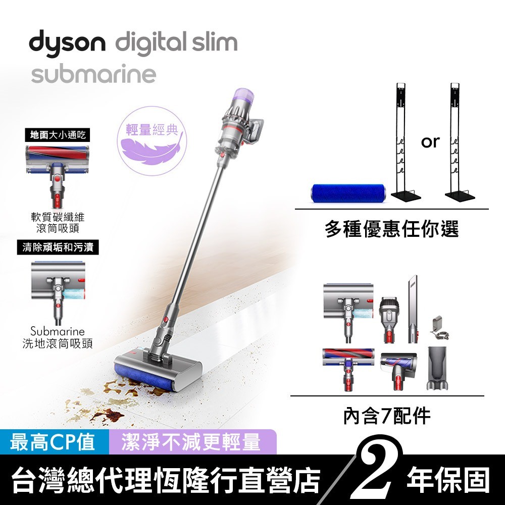 Dyson SV52 Digital Slim Submarine輕量乾濕全能洗地吸塵器/除蟎機 三主吸頭